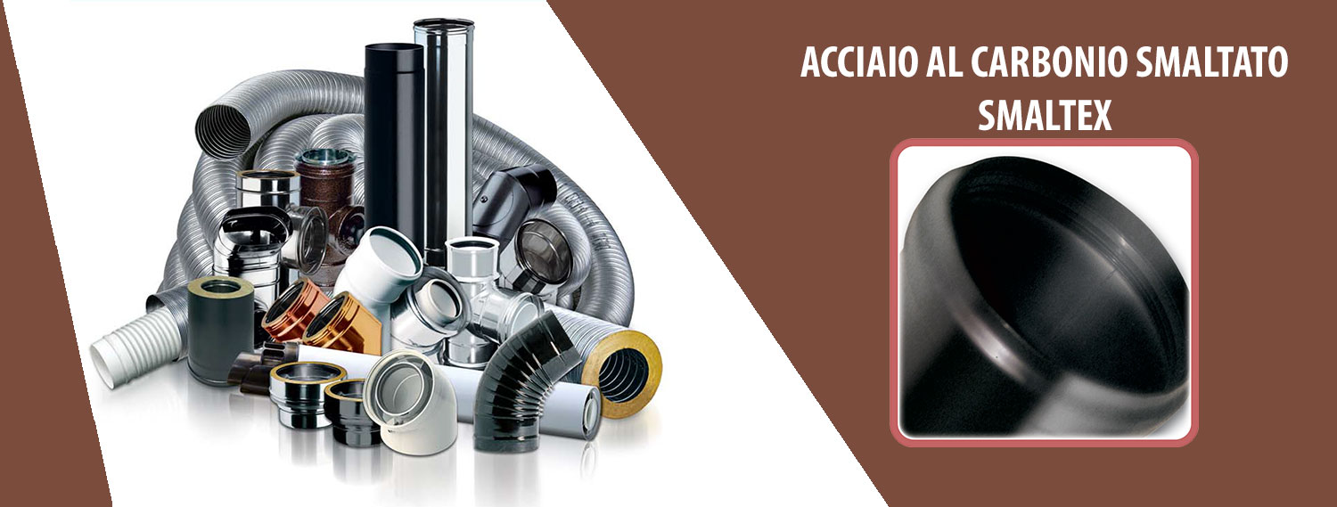 Il sistema monoparete SMALTEX è composto da elementi componibili rigidi, realizzati in acciaio al carbonio smaltato nero di spessore 0,5 mm – 0,8 mm, conformi agli standard previsti dalla marcatura CE secondo la normativa EN 1856-2. Gli elementi modulari hanno innesto classico a bicchiere maschio-femmina calibrato con guarnizione di tenuta a triplice labbro, da utilizzarsi solo con temperature non superiori a 200 °C e pressioni positive fino a 200 Pa, conforme alla normativa europea EN 14241-1, e giunzione meccanica con semplice innesto.