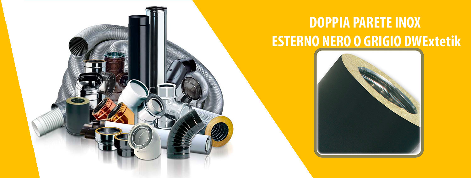 Camino doppia parete in acciaio inox interno AISI 316L esterno nero o grigio – coibentazione in lana minerale spessore 25 / 50 mm