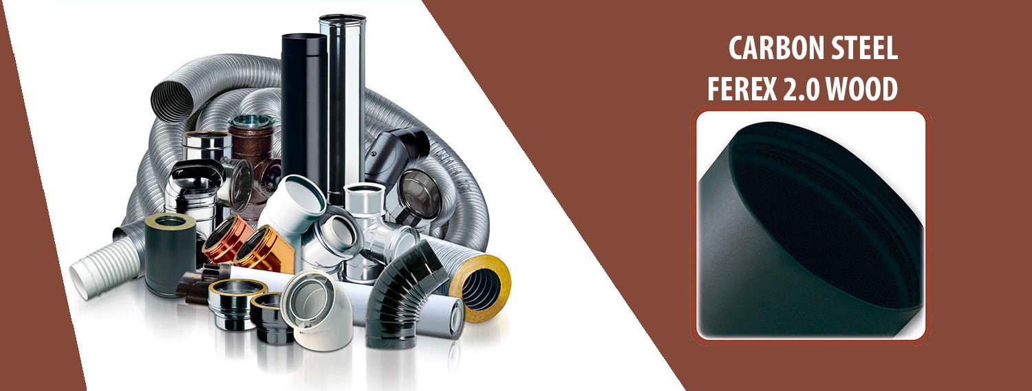 The FEREX 2.0 LEGNA single-wall system is made up of rigid modular components, manufactured in 2 mm thick matt black painted carbon steel tapered, together with seals, for the extraction of flue gases, high aesthetic quality. The components comply as required by the CE marking according to the EN 1856-2 European standard and have a tapered male socket connection. Ideal with generators operating in negative pressure with solid fuels and very high temperatures (up to 600 °C).
