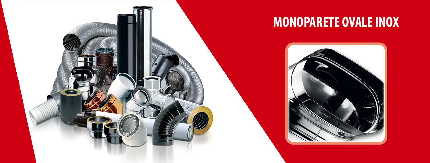 Il sistema monoparete ovale inox è composto da elementi componibili rigidi con finitura lucida, realizzati in acciaio inox austenitico AISI 316L, di spessore minimo 0,5mm conformi agli standard previsti dalla marcatura CE secondo la normativa EN 1856-2. Gli elementi modulari hanno innesto classico a bicchiere maschio-femmina.